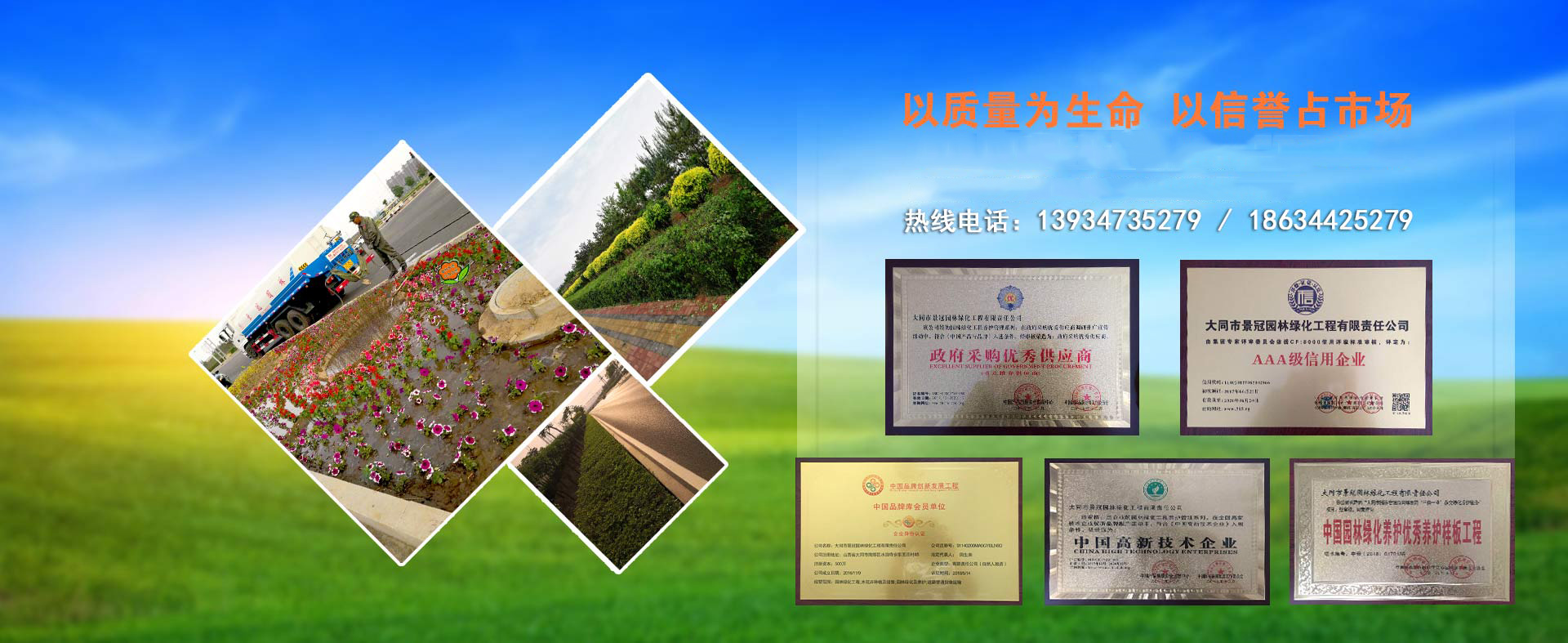 大同市景冠園林綠化工程有限責任公司是一家根植于設計、施工、植保養(yǎng)護、苗木花卉生產(chǎn)于一體的園林景觀企業(yè)。公司“以質(zhì)量為生命”、“以信譽求發(fā)展”這是公司一貫的經(jīng)營宗旨。并以創(chuàng)新,誠信,綠色,共享的發(fā)展理念,創(chuàng)造良好的企業(yè)環(huán)境。堅持愛綠,護綠,保綠的方針為城市增添一份綠色,用綠色擔當生態(tài)建設使命是我們共同追求的價值和企業(yè)目標。以全新的管理模式,完善的技術(shù),周到的服務,卓越的品質(zhì)為生存根本。幾年來我們致力于園林景觀植物領域的研究,在城市綜合體景觀,校園園林景觀,道路景觀,生態(tài)農(nóng)業(yè)景觀,美麗鄉(xiāng)村景觀,濕地景觀等多個領域參與規(guī)劃設計施工。不斷加大科技投入力度,加強人才的儲備,網(wǎng)絡技術(shù)的培訓,提升自主創(chuàng)新能力,不斷完善企業(yè)文化,用超前的技術(shù)制定出一套完整的園林植保技術(shù)管理方案。我們堅持以擔當為使命,用戶至上,服務至上,秉持初衷,不忘初心,實實在在,心無旁騖做好植保養(yǎng)護主業(yè),打造屬于自己的企業(yè)品牌,好好服務客戶,打動客戶。